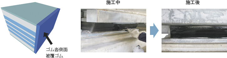HBコートはゴム支承の表面被覆ゴムのオゾン劣化に伴うクラックの補修、およびオゾクラックの予防に対して保護するコーティング剤です。クラック幅が比較的大きい場合にはHARDタイプを、ヘアークラックなどの小さい場合にはSOFTタイプを塗布します。一液生なので作業が手軽に行えます。